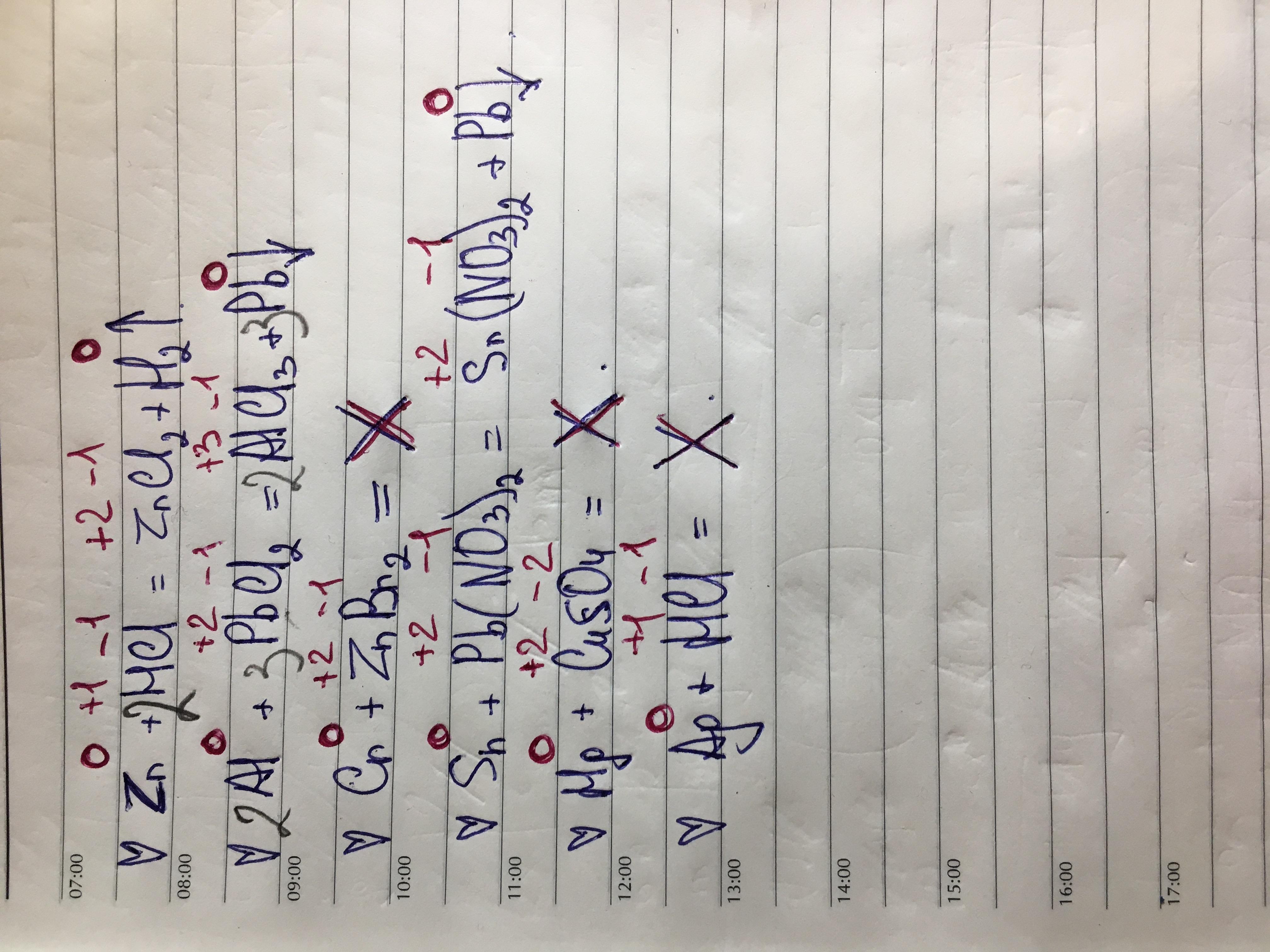 Возможна ли ОВР между веществами (при с.у) Допишите уравнения возможных реакций. 1) Zn + HCI > 2) Al + PbCz > 3) Cr + ZnBrz > 4) Sn + Pb(NOз)2 —> 5) Hg + CuSO4 — 6) Ag + HCI >