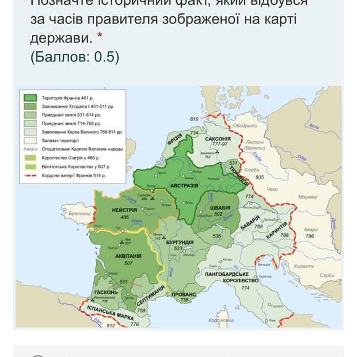 1Позначте історичний факт, який відбувся за часів правителя зображеної на карті держави.