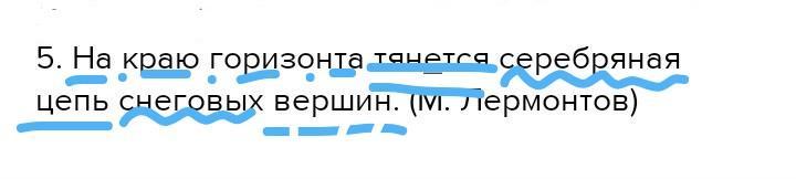 5. На краю горизонта тянется серебряная цепь снеговых вершин. (М. Лермонтов)