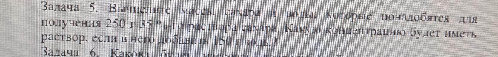 Вычислите массы сахара и воды, которые понадобятся для получения 250 г 35 %-го раствора сахара. Какую концентрацию будет иметь раствор, если в него добавить 150 г воды?