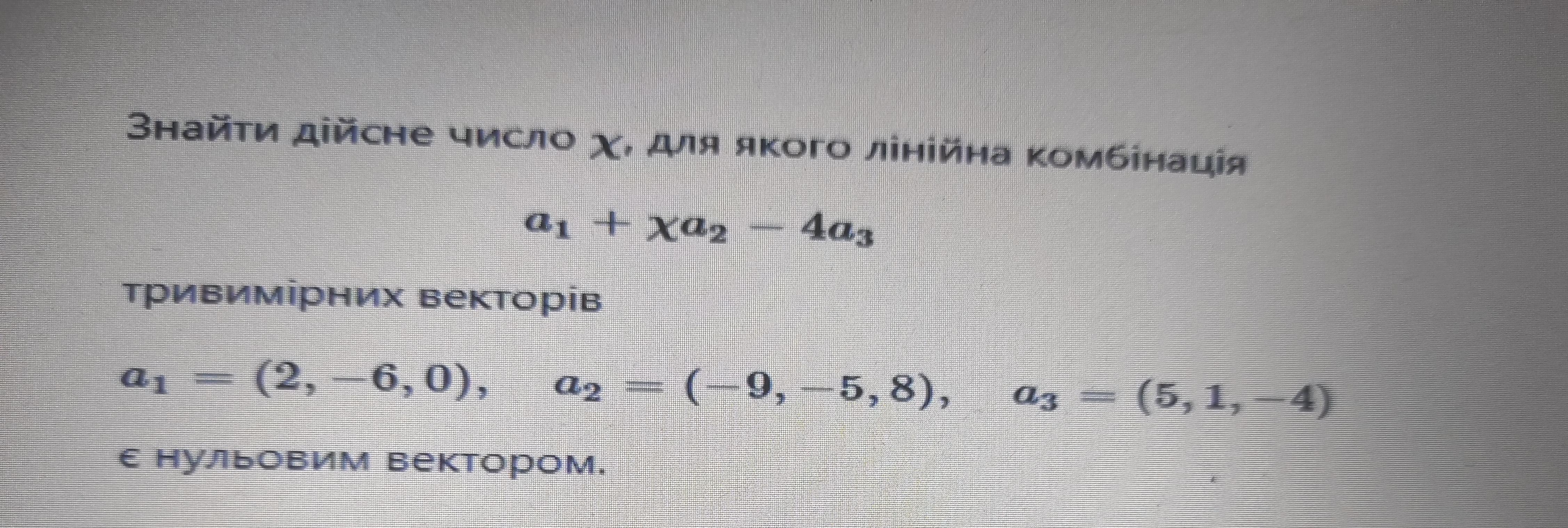 ( 2 ;- 6 ; 0 ) + х (- 9 ;- 5 ; 8 ) - 4( 5 ; 1 ;- 4 ) = ( 0 ; 0 ; 0 ) ;