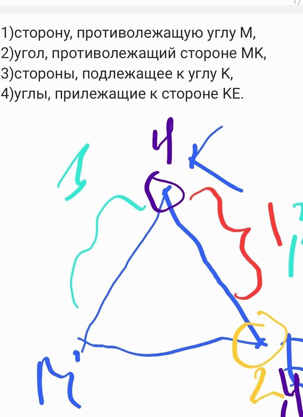 начертите произвольный треугольник, обозначьте его вершины буквами M, K и E. Укажите:
