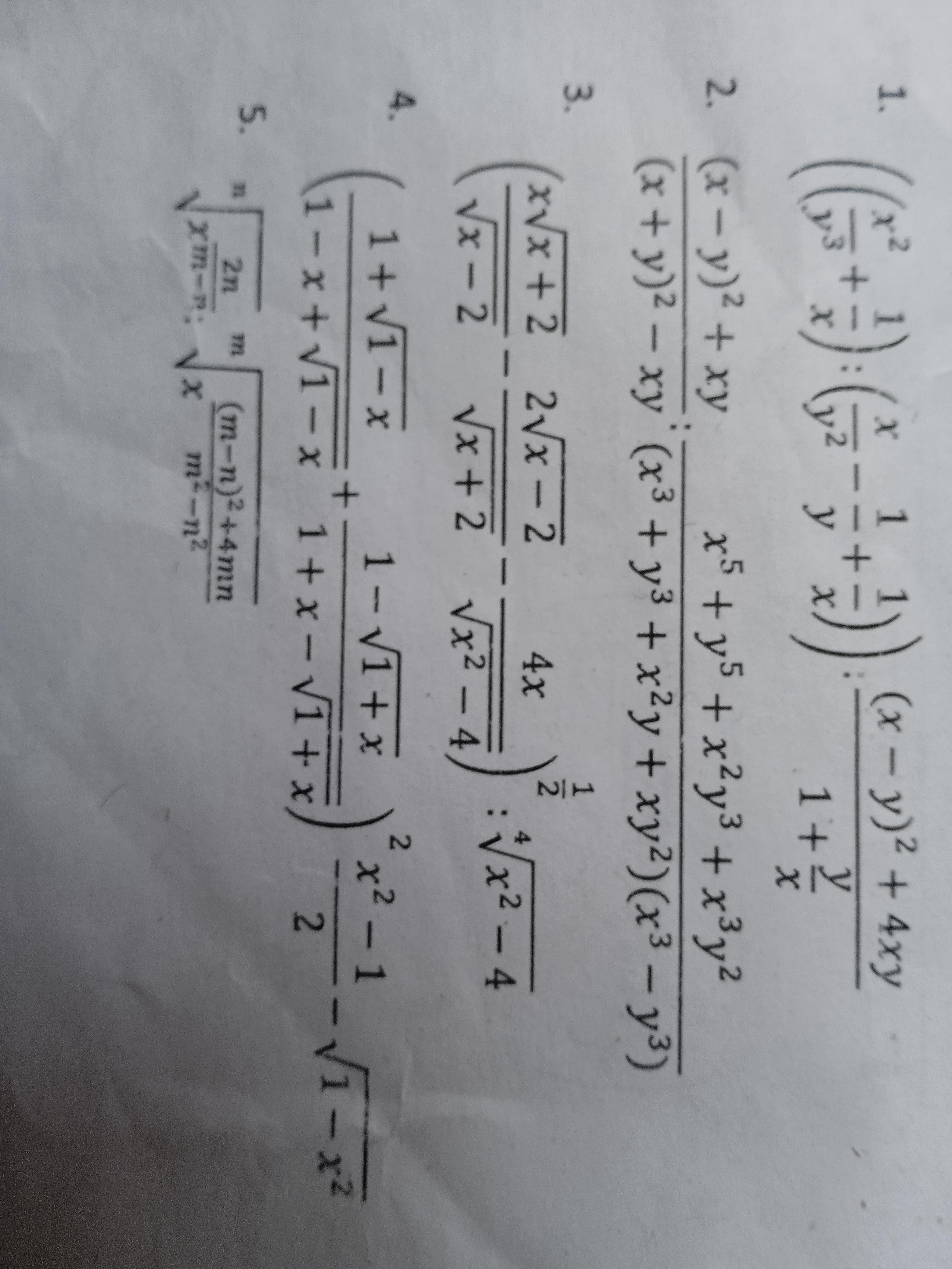 Ответы: 1/ху , х-у, корень дроби (х-2) /(х+2) , -1 , м корней из х.