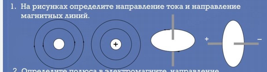 возможно я туплю, но два последних рисунка более менее понятно: рисунок #3 - у нас есть магнитные линии, находим направление тока по правилу левой руки - направление тока снизу вверх. снизу +, с верху -