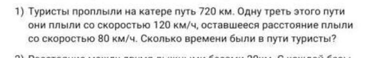 2) 240:120=2 (часа) проплыли туристы треть пути