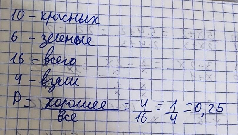 Спортсмен покупает для игры в настольный теннис 4 ракетки. Продавец, не выбирая, берет с полки 4 ракетки. Найти вероятность того, что среди купленных ракеток будет одна с красным покрытием, если на полке лежали 10 ракеток с красным и 6 ракеток с зеленым покрытием.