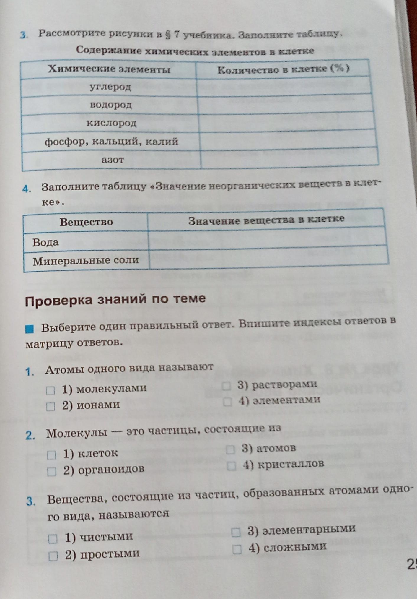 Извините, в проверке знаний не очень уверена,но вроде все правильно: 1-элементы 2-атомы 3-простые