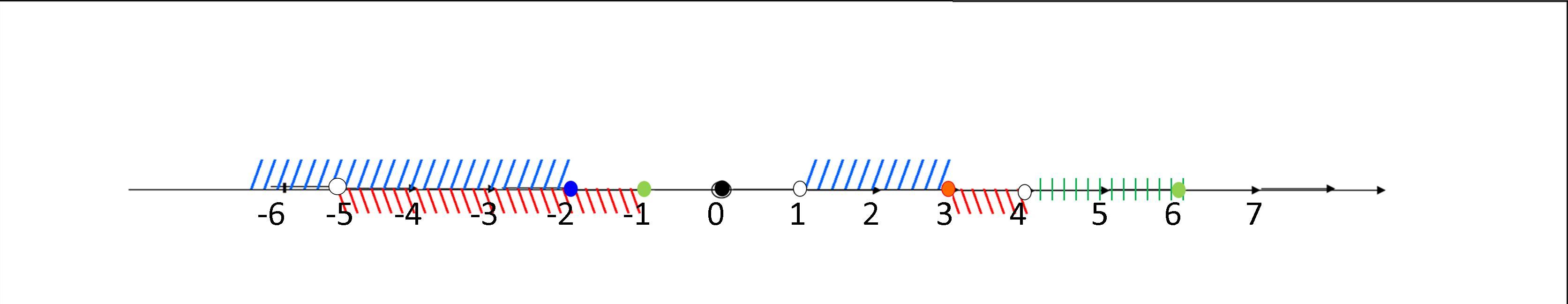 Ответ: ∈ (-∞; - 5) ∪ (-5;-1] ∪ (1;4) ∪ (4;6]