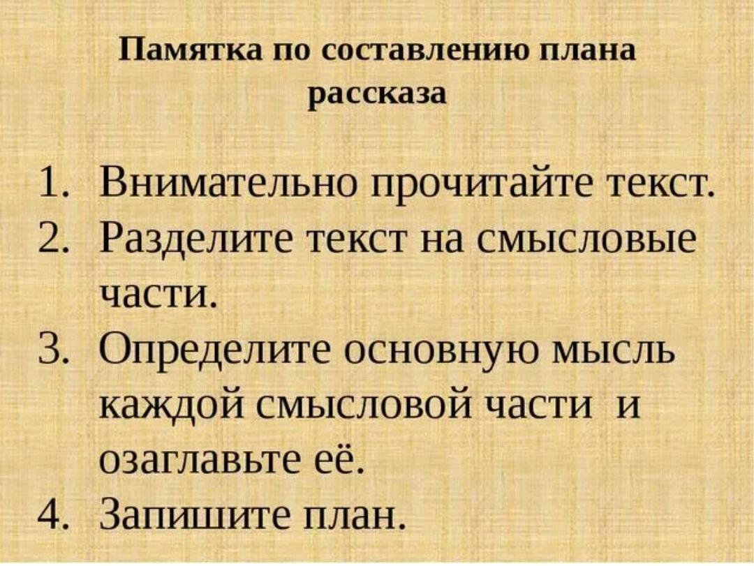 Пересказывать произведения по плану гораздо легче, ведь когда перед тобой план текста, ты не запутаешься в последовательности событий в рассказе