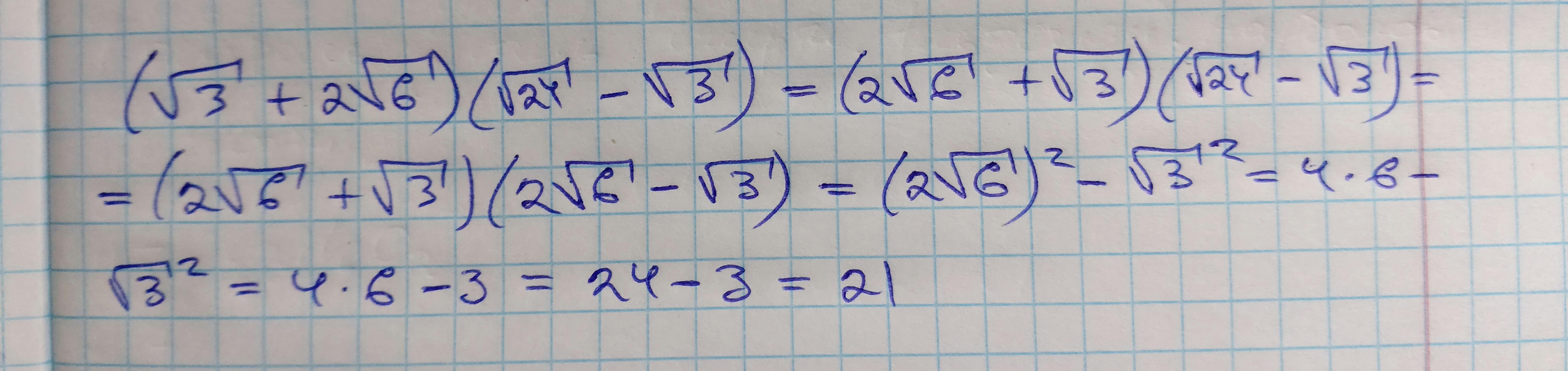 (корень 3 + 2 корень 6) × (корень 24 - корень 3)