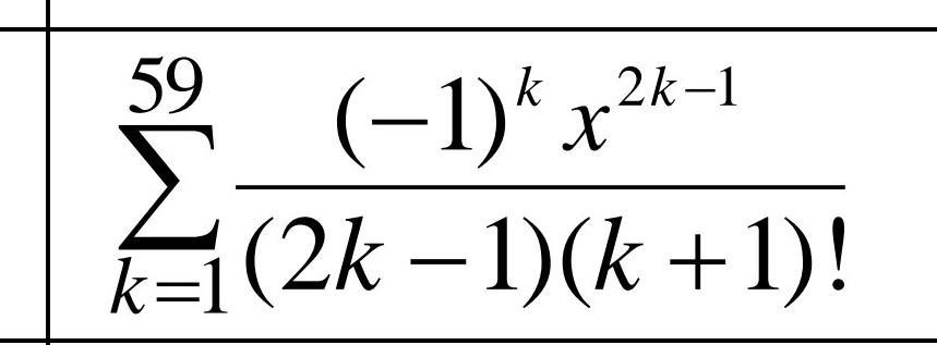 print(sum((pow(-1, k) * pow(x, (2*k - 1))) / ((2*k - 1) * factorial(k + 1)) for k in range(1, 59)))
