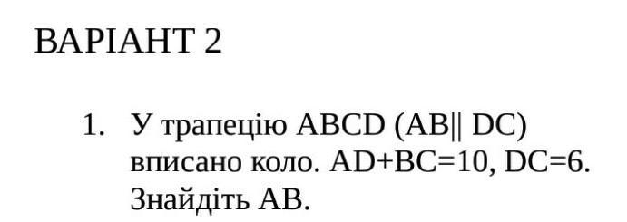 AD+BC=10 DС+АВ=10; 6+АВ=10; АВ=4.