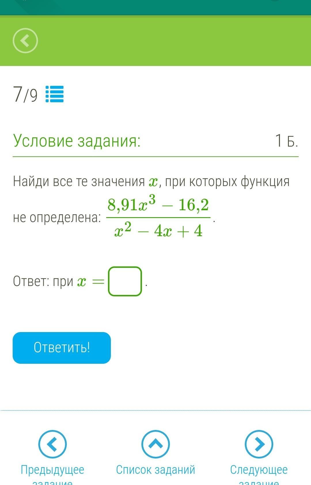 Запись: х : R ≠ 2.