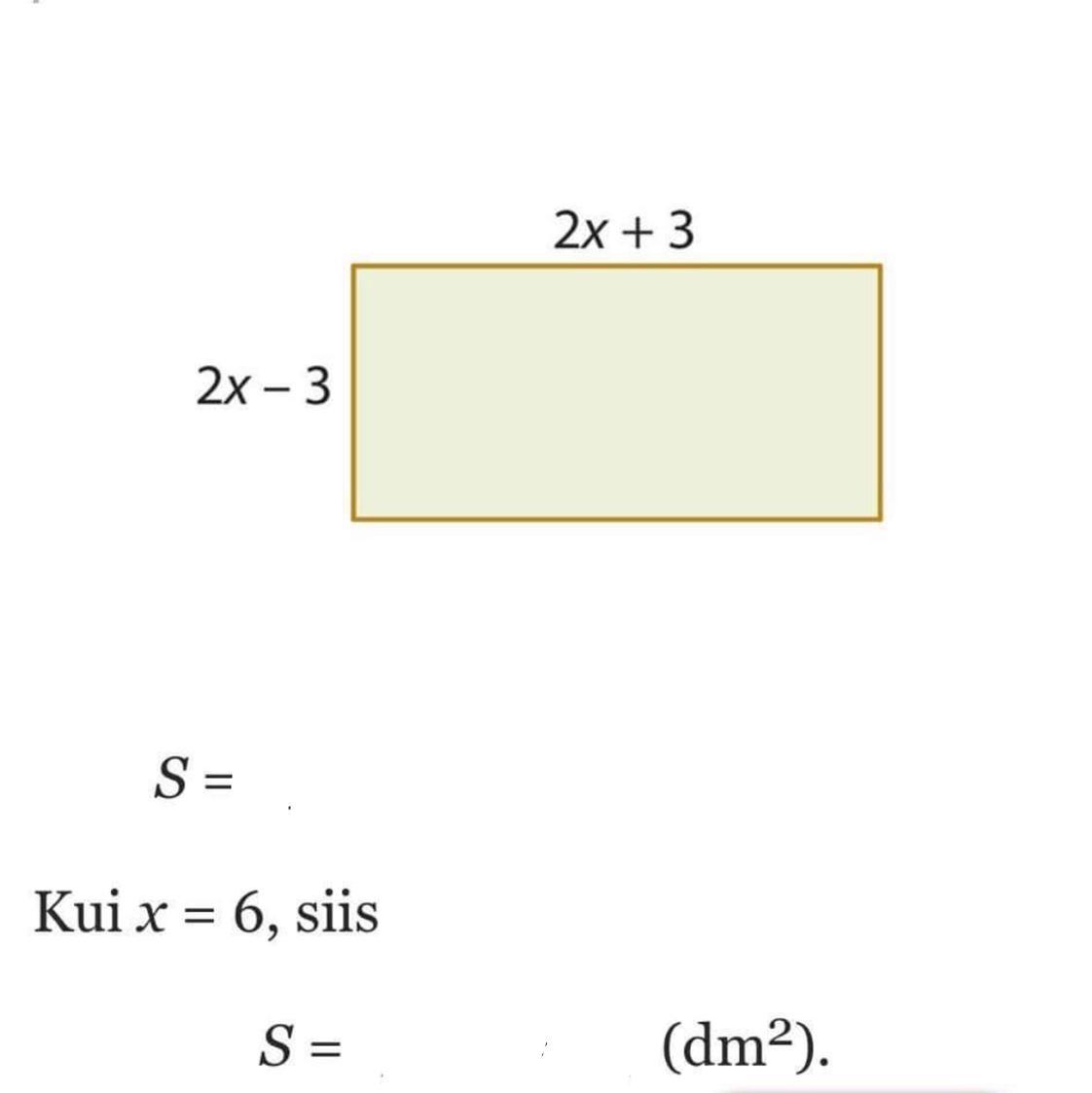 Напишите площадь фигуры и вычислите значение площади, если размеры даны в дециметрах и x = 6.