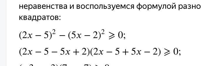 a²-b²=(a-b)(a+b), только в этом неравенстве вместо а стоит выражение 2х-5, вместо b выражение 5x-2. Поэтому, получается:
