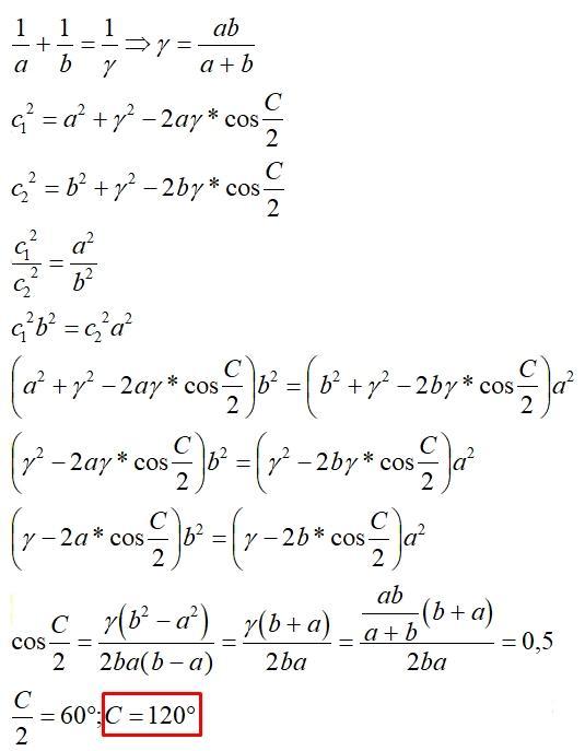 потом по теореме о биссектрисе находим отношение с₁ к с₂