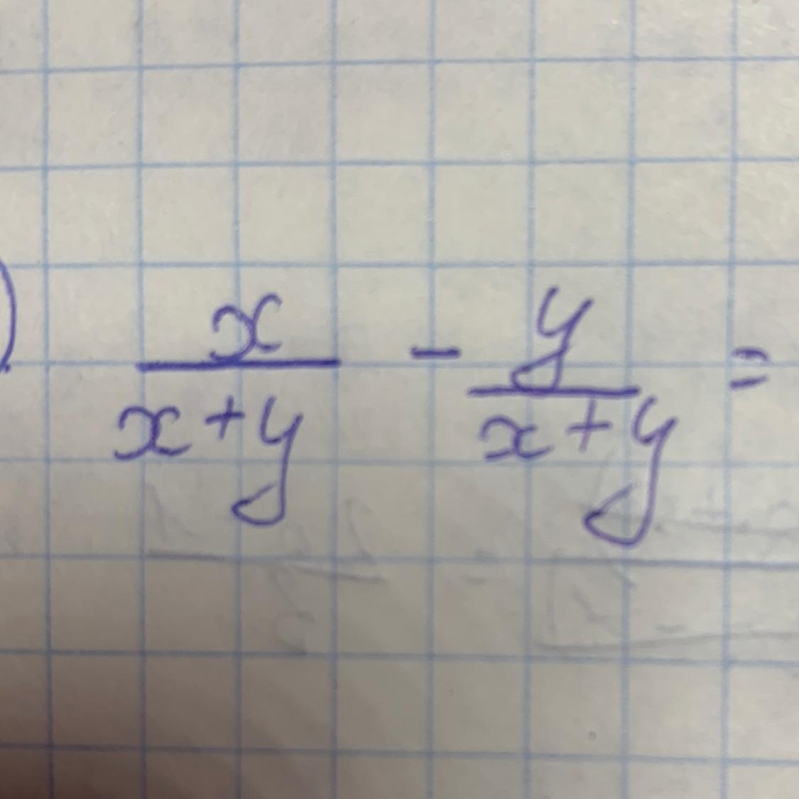 Объяснение: чтобы из одной дроби вычесть другую при равных знаменателях нужно из первой вычесть вторую и записать тот же знаменатель в знаменателе, поэтому ответ будет (х-у)/(х+у)