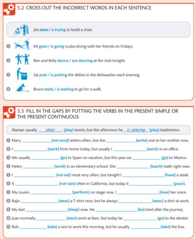 35 баллов. Помогите пж надо до завтра сдать (Present continuous, simple) (5.2 не надо)