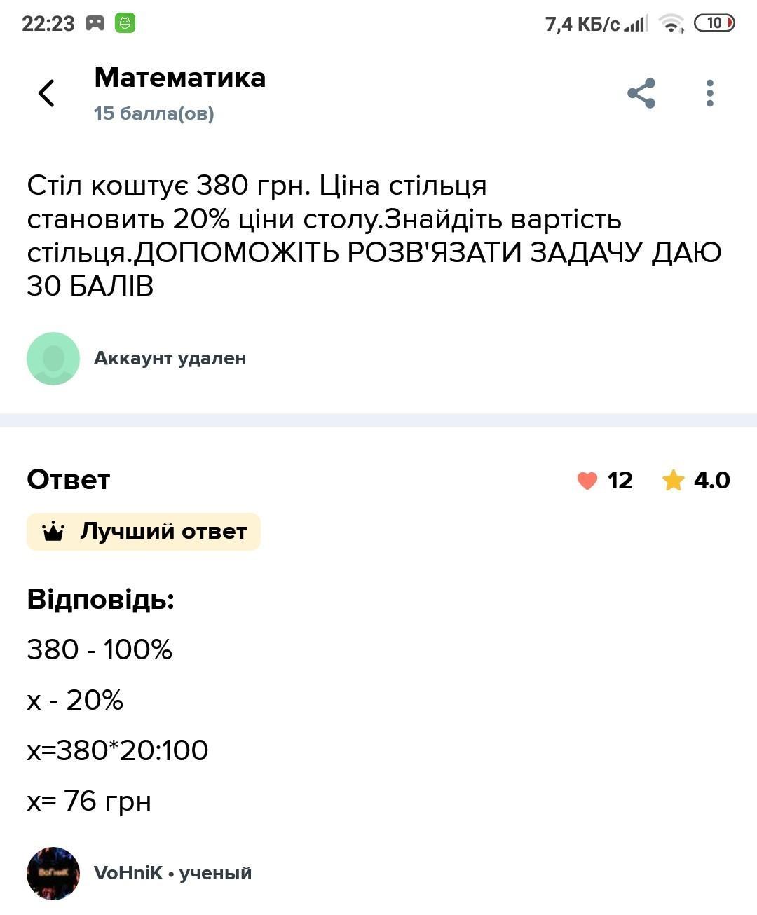 380*20:100=76 гривень
