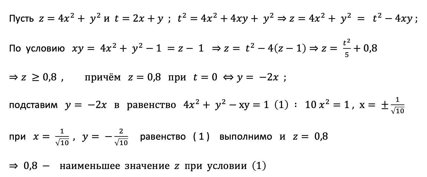 Найдите наименьшее значение выражения 4x^2+y^2, если 4x^2-xy+y^2=1