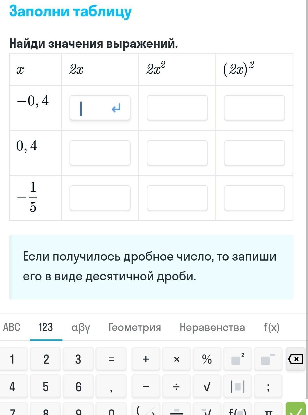 -0,4 = -0,8 = 0,32 = 0,64