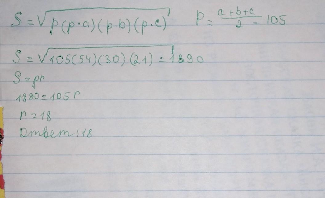 В треугольнике стороны равны 51 см, 75 см и 84 см. Вычислите радиус