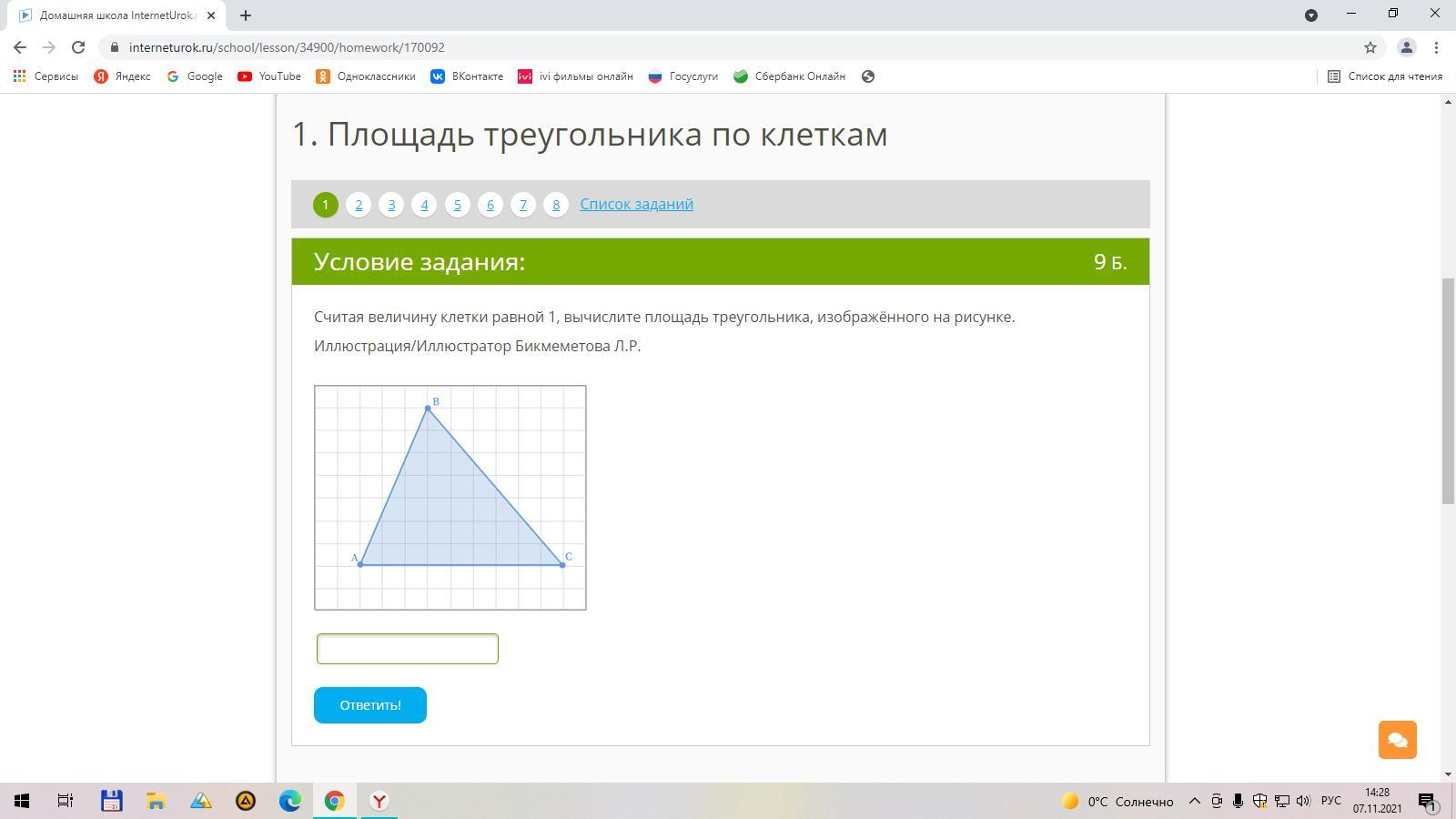 Площадь треугольника равна половине произведения стороны на высоту, проведённую на ЭТУ сторону.
