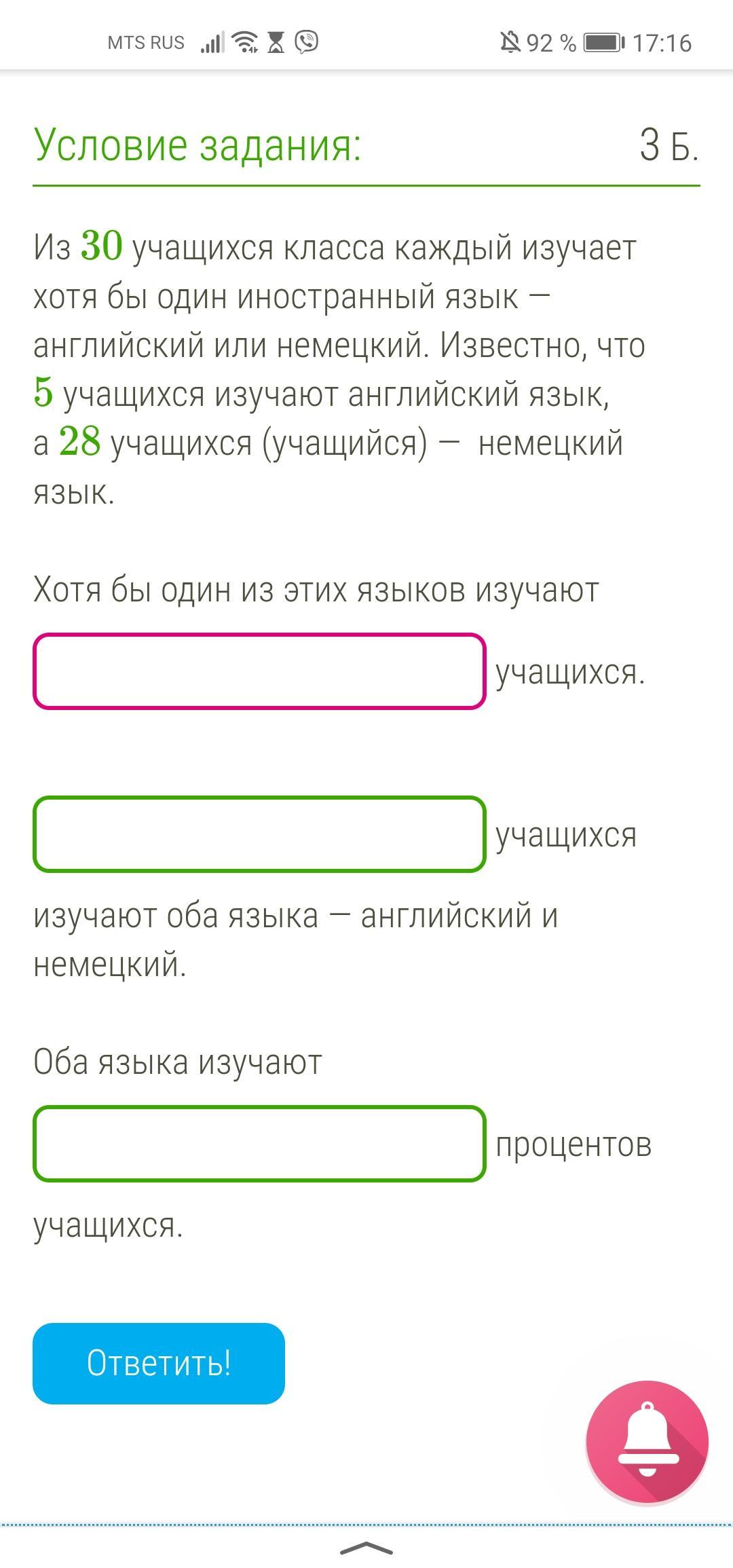 5+28-30=3 изучают оба языка, то есть и английский, и немецкий