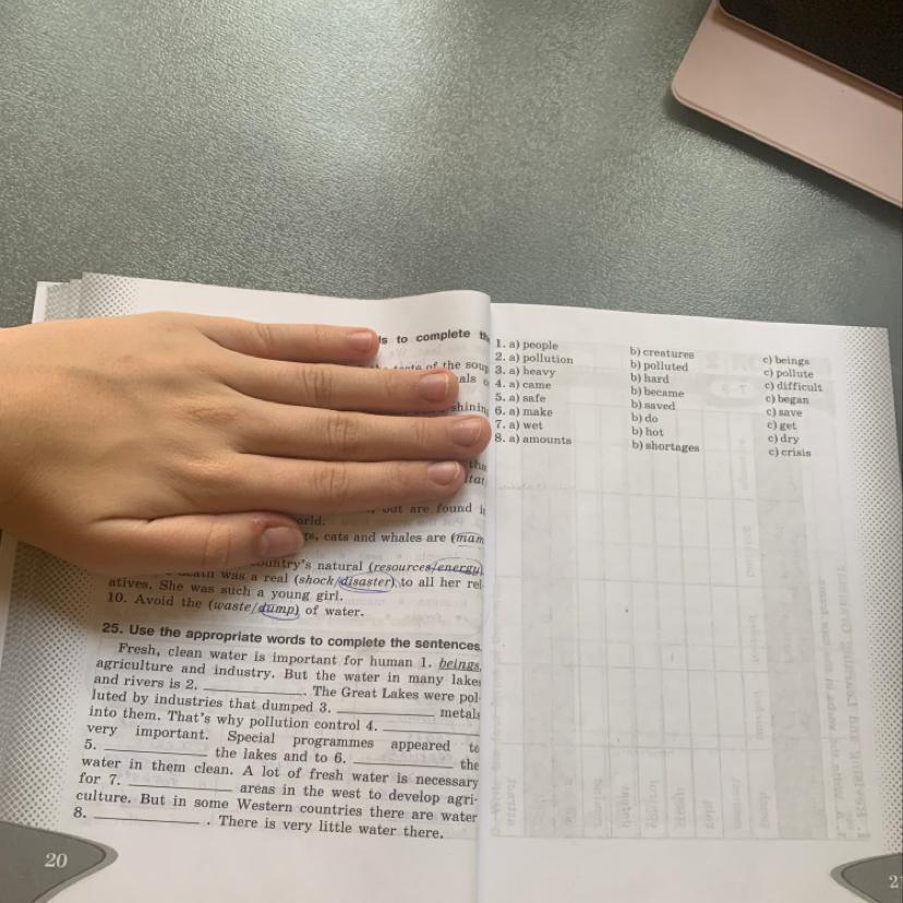 Нужно выбирать слова из предложенных справа