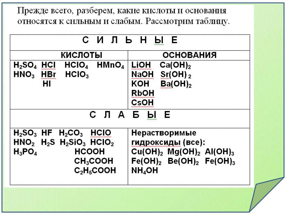 При определении среды раствора солей необходимо учитывать, что среда раствора определяется сильным компонентом. Если соль образована кислотой, являющейся сильным электролитом, то среда раствора кислая. Если основание сильный электролит, то – щелочная.