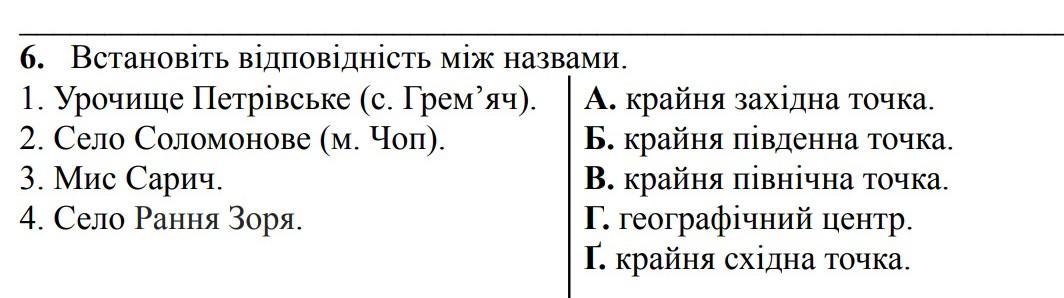 1. В 2. А 3. Б 4. Ґ