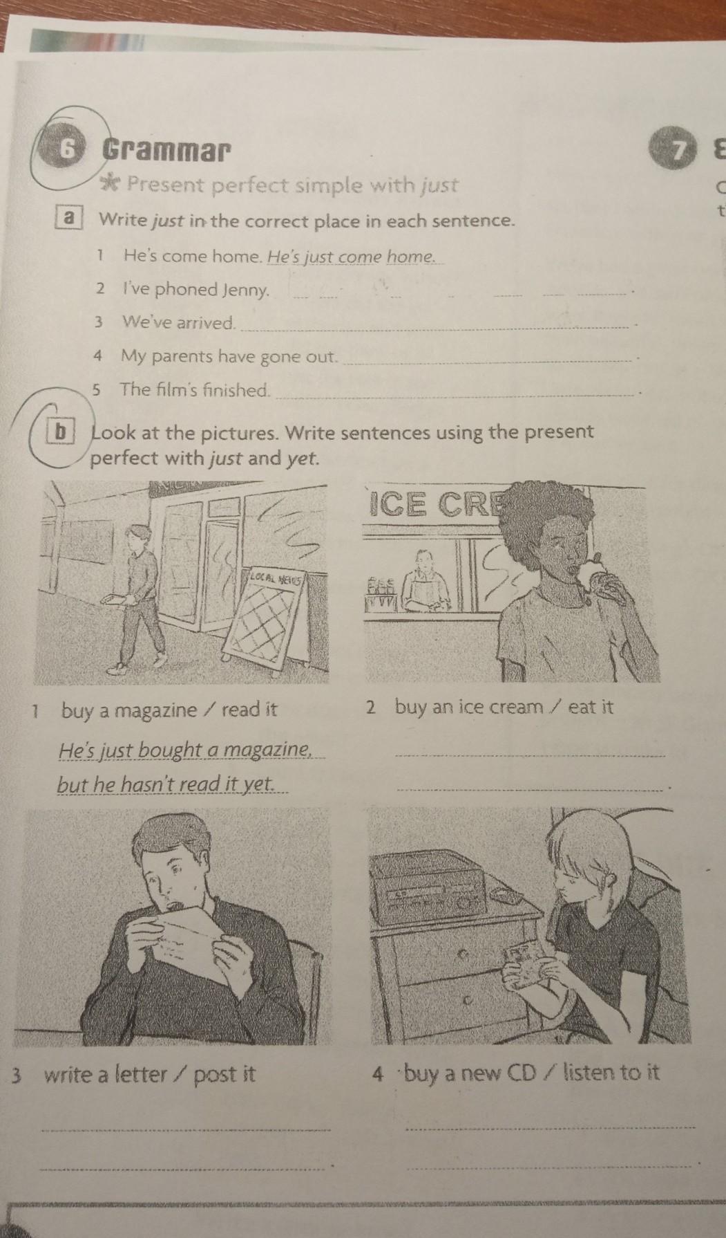 2. She has just bought ice cream, but she hasn’t eaten it yet.