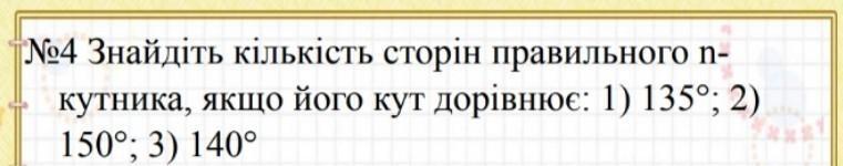 n=360/(180-a)=360/(180-140)=360/40=9 это девятиугольник