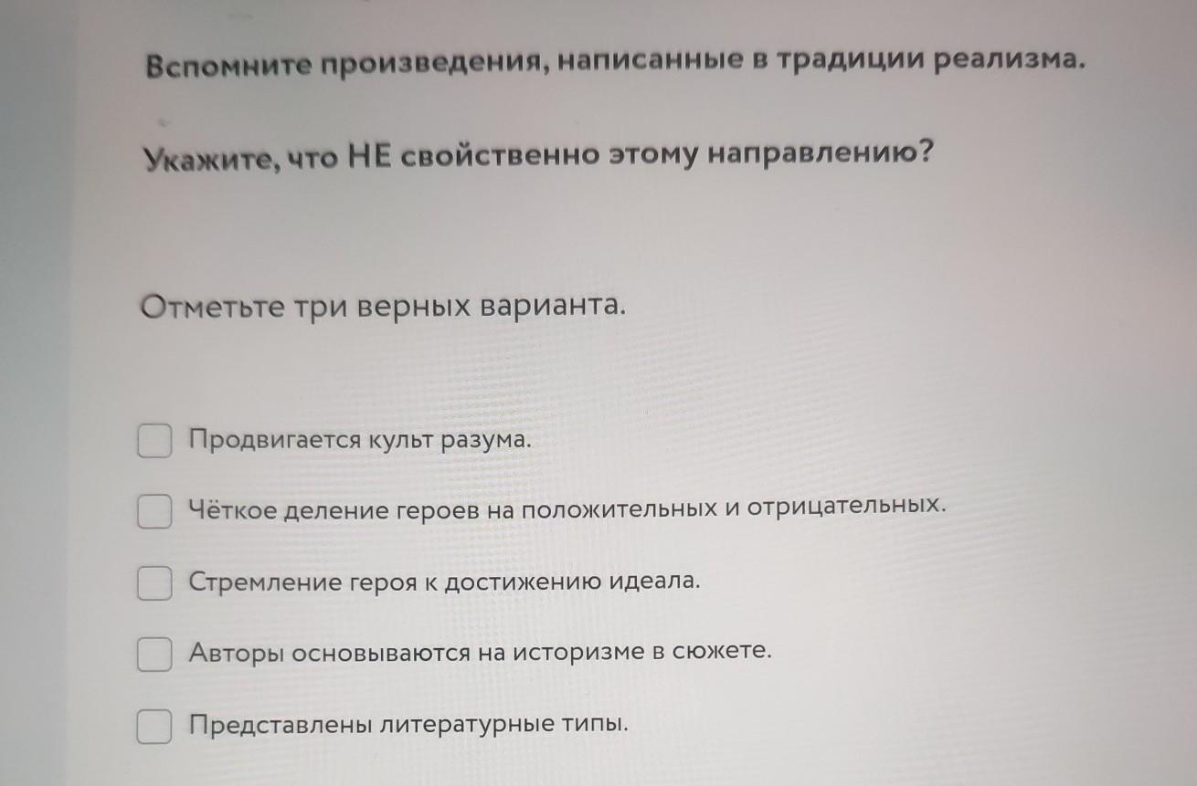 Вспомните произведения, написанные в традиции реализма. Укажите, что НЕ свойственно этому направлению?