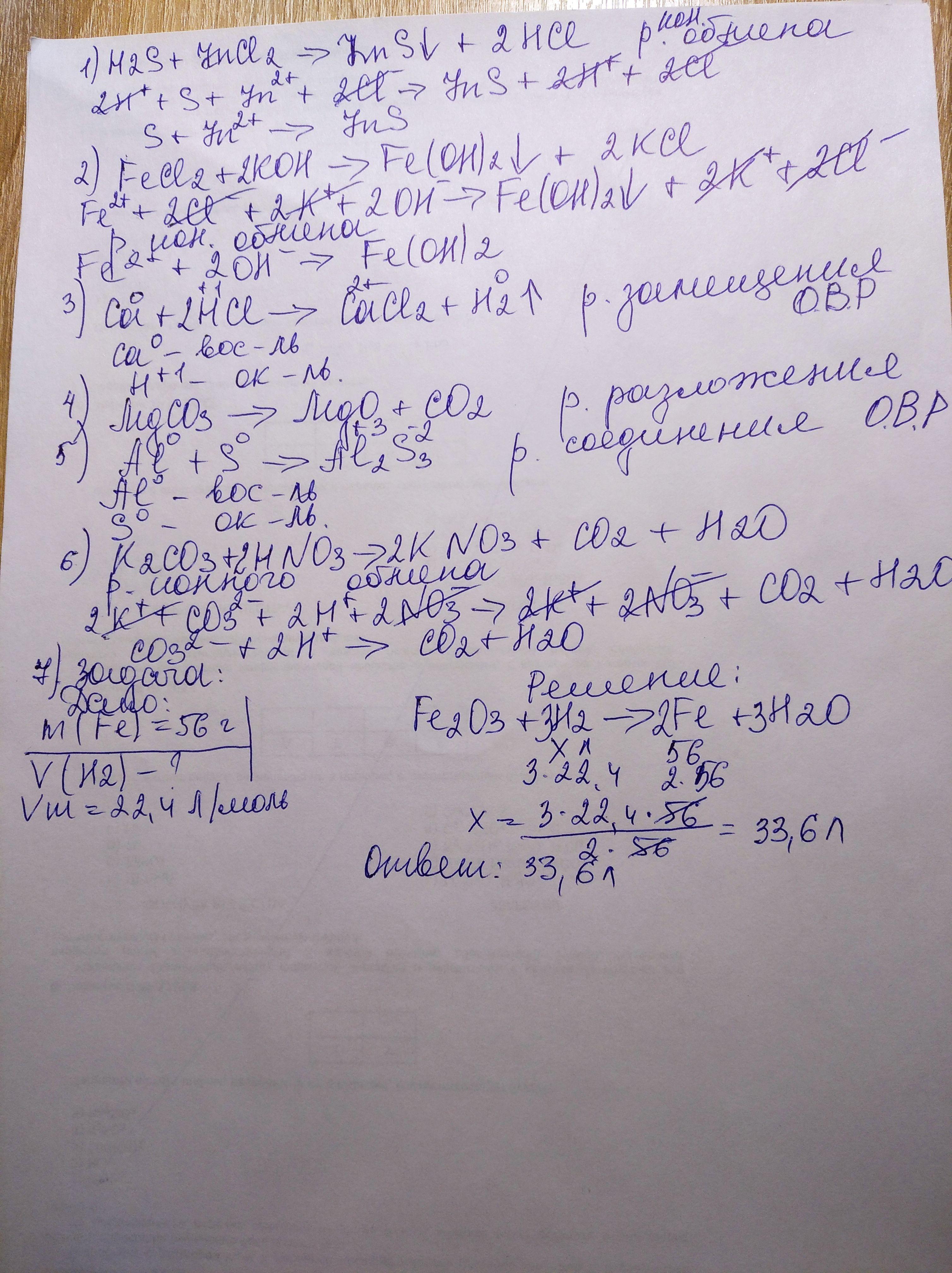 7. Какой объём водорода (н.у.) потребуется для получения 56 г железа из оксида железа(III)?