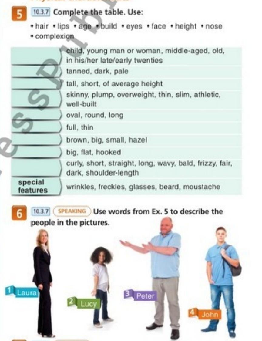 103.7 SPEAKING Use words from Ex. 5 to describe the people in the pictures. Помоги пж