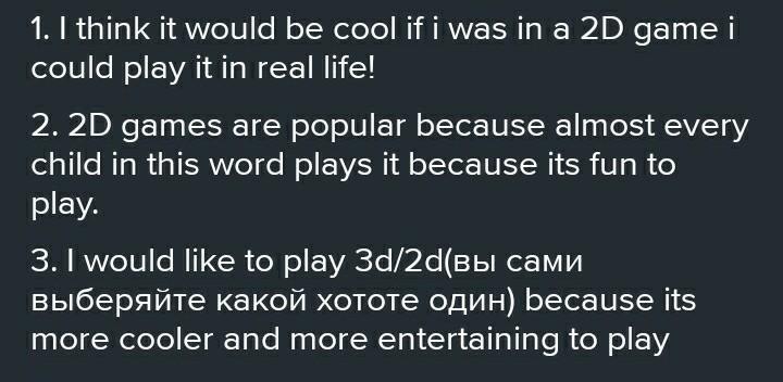 3 THINK! 101.7) 10.3.3 which games (2D or 3D)