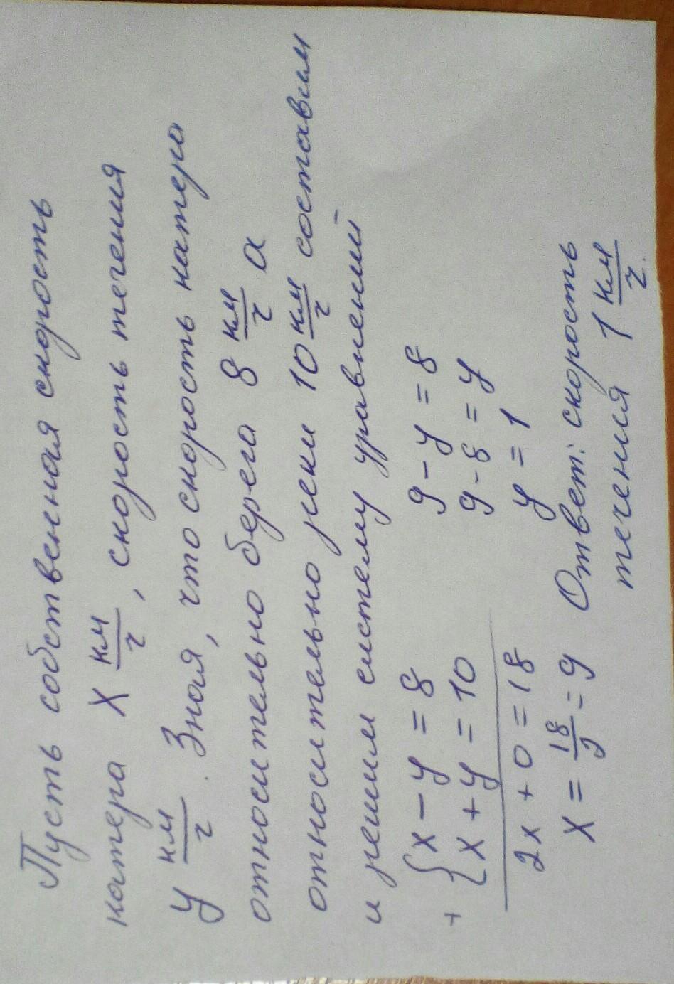 10 - 8 = 2 (км/час) - скорость течения реки.