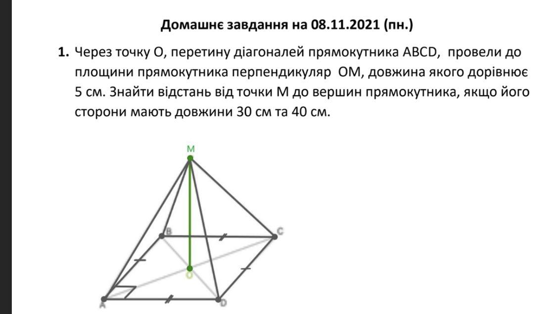 МС=√(ОС²+МО²)=√(25²+5²)=√650=