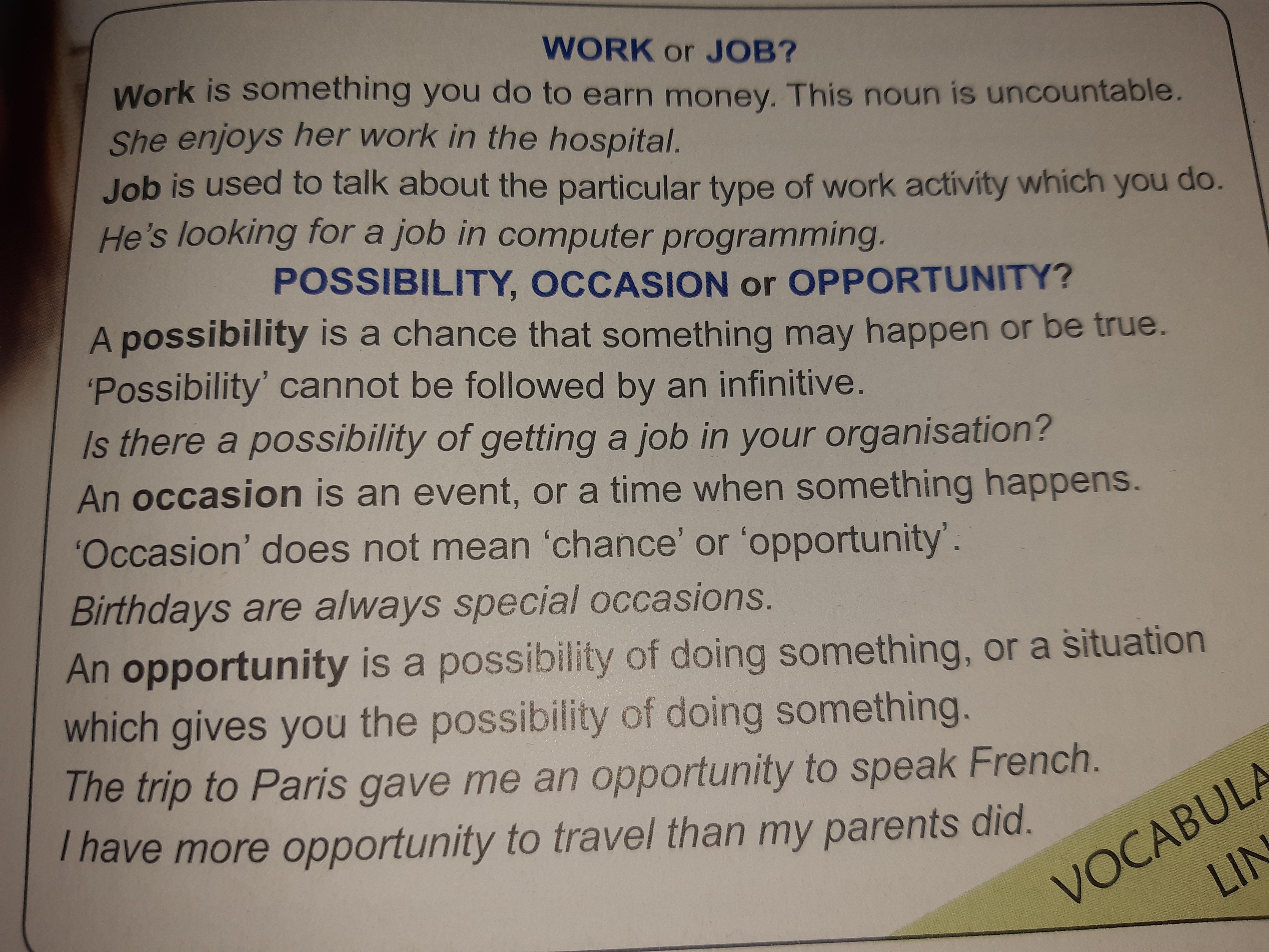 Нагода - це подія або час, коли щось відбувається. "Випадок" не означає "випадок" чи "можливість". Дні народження - це завжди особливі випадки. Можливість - це можливість щось зробити, або ситуація, яка дає можливість щось зробити. Поїздка до Парижа дала мені можливість розмовляю французькою Маю більше можливостей подорожувати, ніж мої батьки.