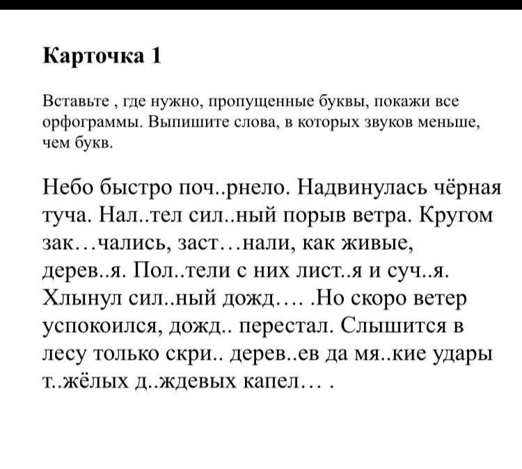 сильный ,закачались,дождь, деревьев,капель ) здесь меньше звуков чем букв