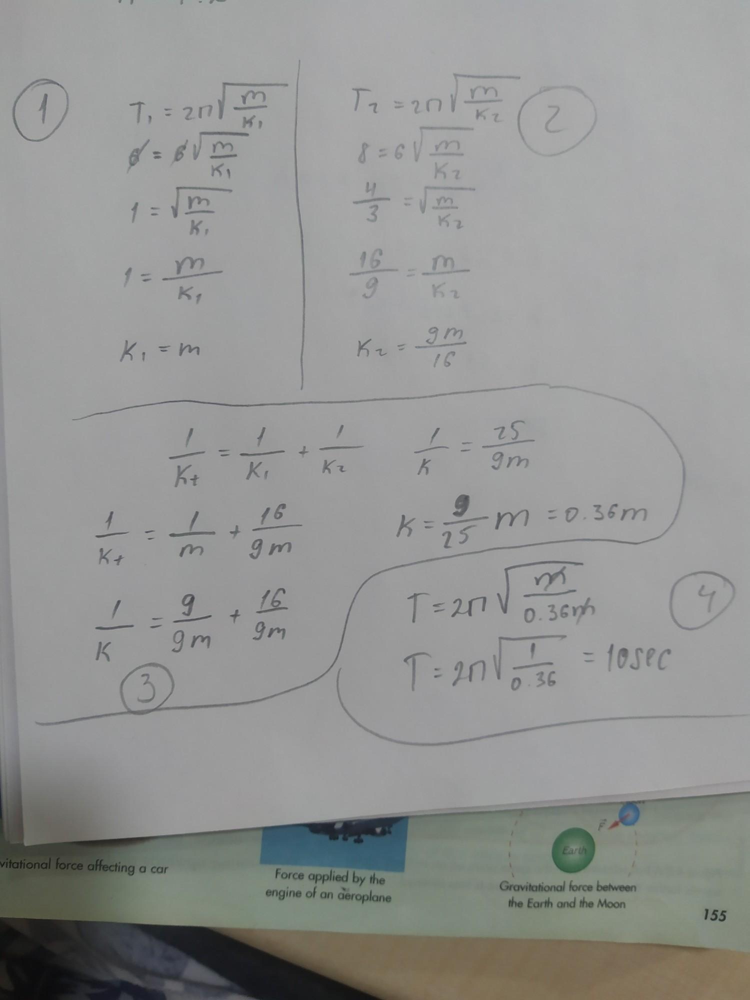 Груз, подвешенный к пружине жесткостью k₁, если совершает свободные, незатухающие колебания, период которых Т₁ = 6 с. Тот же груз, подвешенный к пружине жесткостью k₂, будет совершать колебания с частотой Т₂ = 8 с. Если пружины соединить последовательно и к этой системе подвесить тот же груз, то какой период будет у этого маяка? Ответ запишите в с.