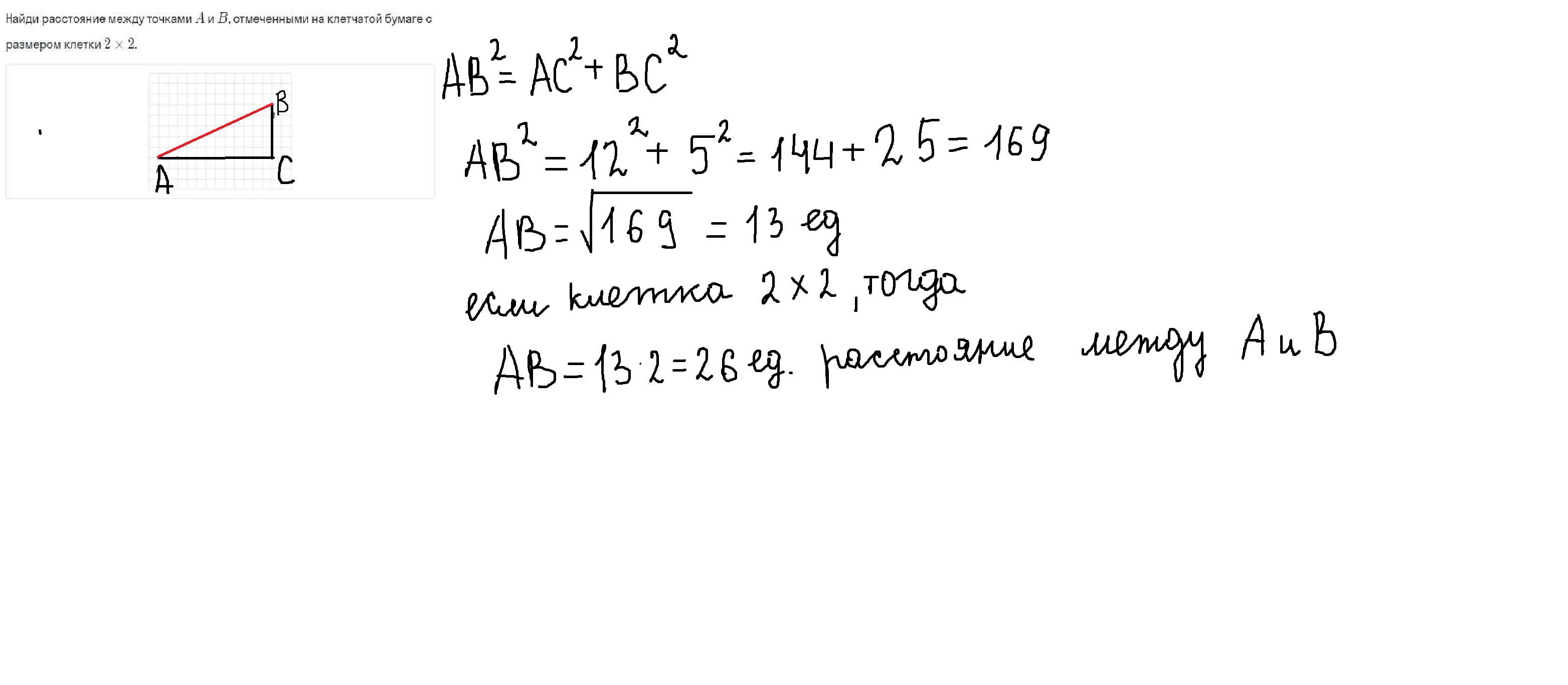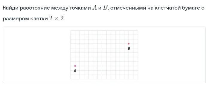 ПОМОГИТЕ ПЛИЗ!!!! Найди расстояние между точками а и б, отмеченными на клетчатой бумаге с размером клетки 2 х 2
