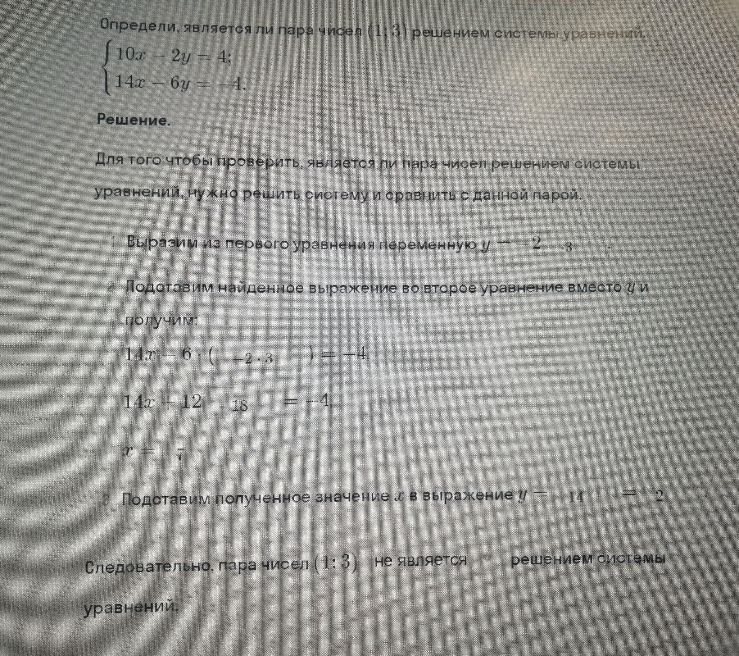 Следовательно, пара чисел (1; 3) является решением системы уравнений