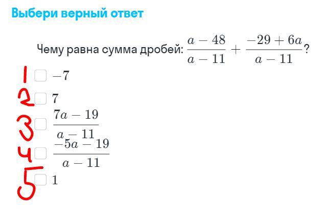 (а - 48)/(а - 11) + (-29 + 6а)/(а - 11) =