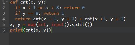 return cnt(x - 1, y + 1) + cnt(x +1, y + 1)