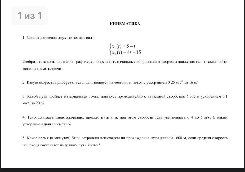 1. Уравнение равномерного движения: , соответственно поданные уравнения являются им =>