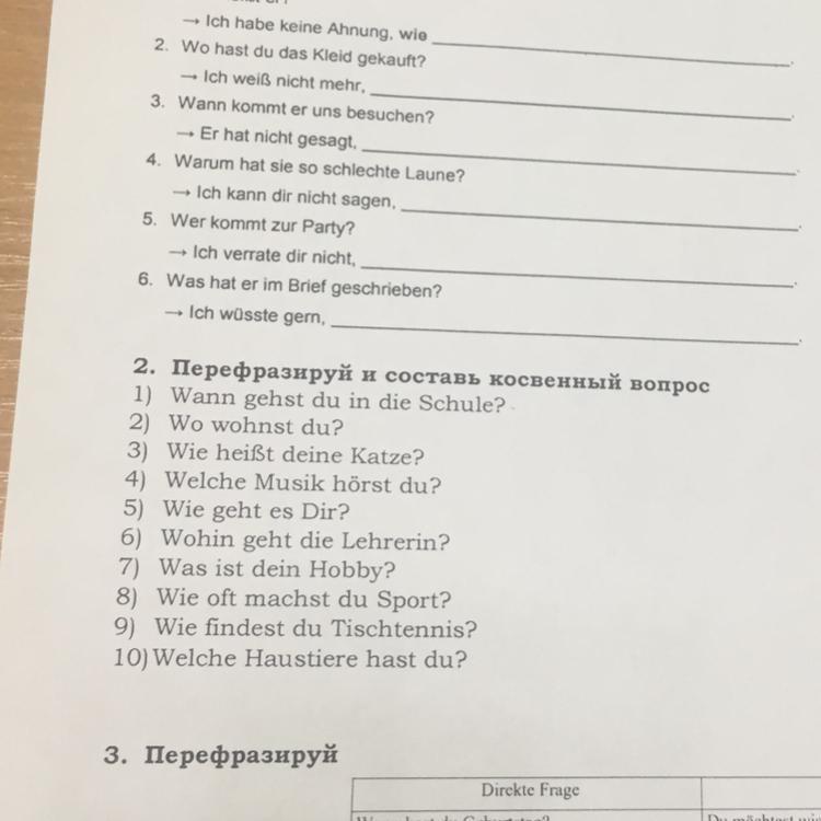 1. Ich wüsste gern, wann du in die Schule gehst.