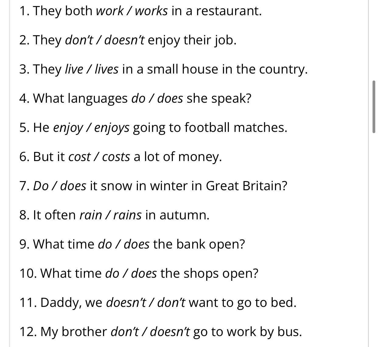work. dont. live.do.enjoys.costs.does.rains.does.does.dont.does not