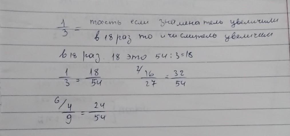 1. Данную дробь замените равной ей дробью, знаменатель которой равен 54: 1)1/3;2)4/9;3)16/27